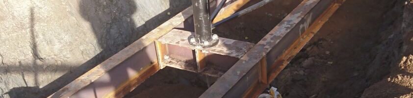 Gespreide funderingen bestaande uit een staalconstructie geplaatst op prefab betonnen platen onder maaiveld